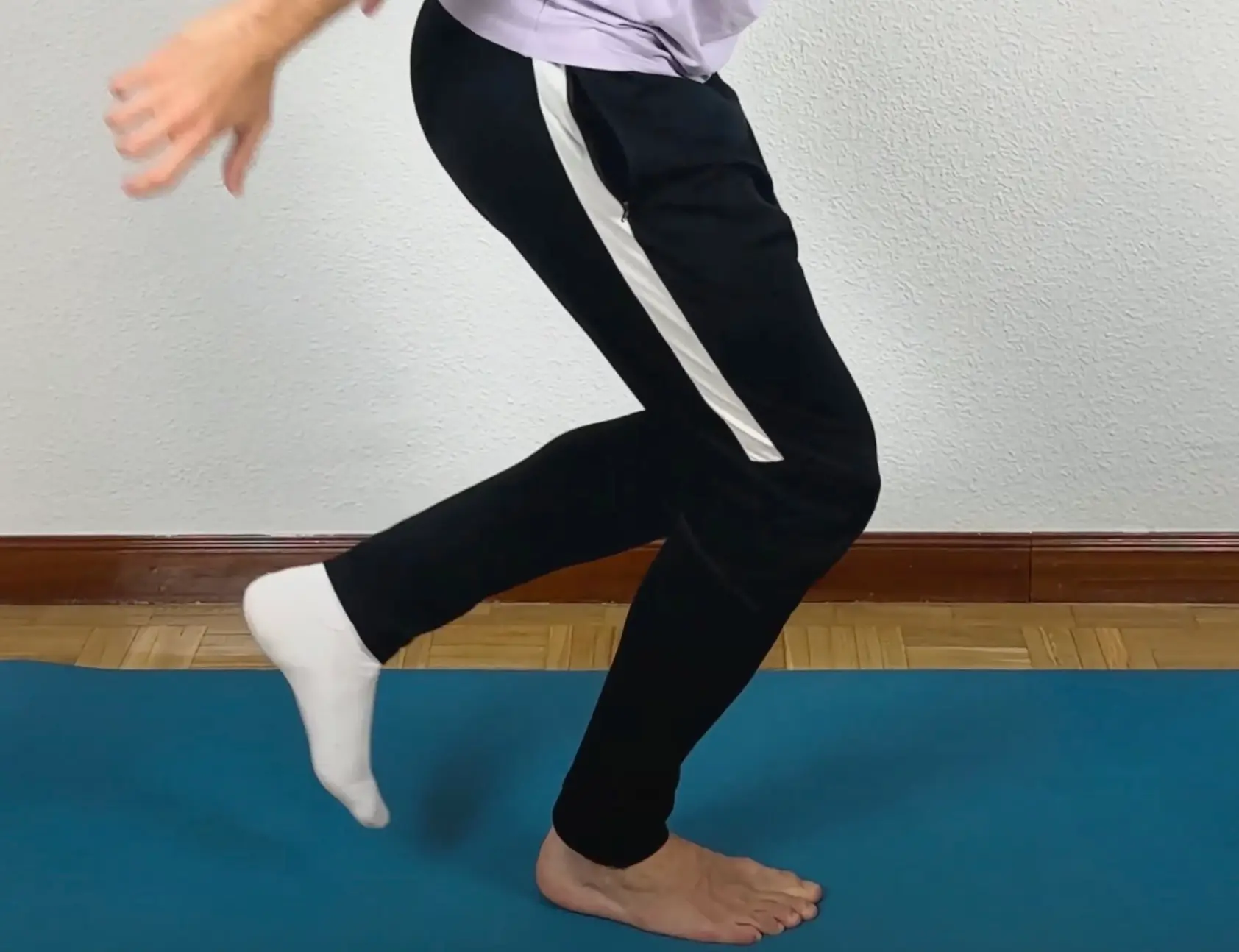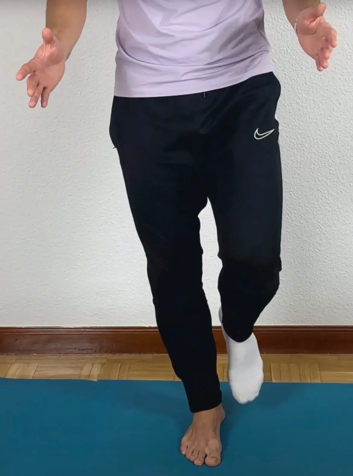 Este ejercicio es un poco más complejo, pero es muy efectivo para mejorar la estabilidad lateral del tobillo y la coordinación, esencial para prevenir torceduras. Se enfoca en el control del tobillo cuando te mueves en distintas direcciones: