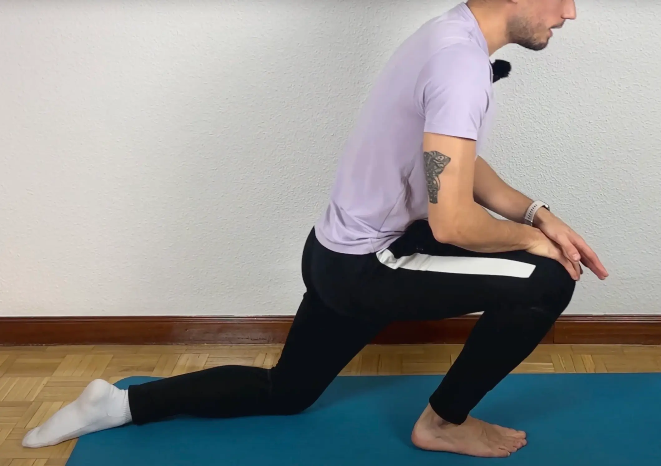Colócate en una posición de caballero, con el pie lesionado hacia adelante y la rodilla ligeramente flexionada.